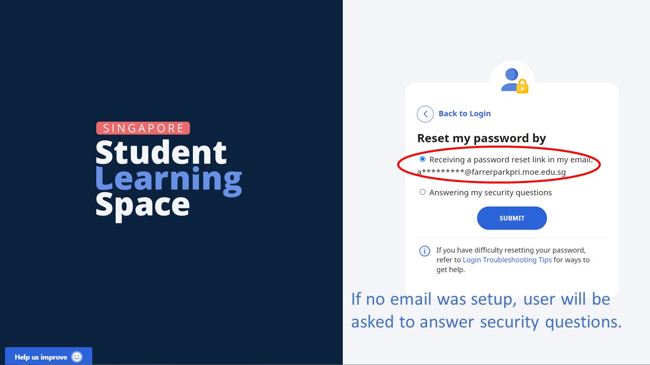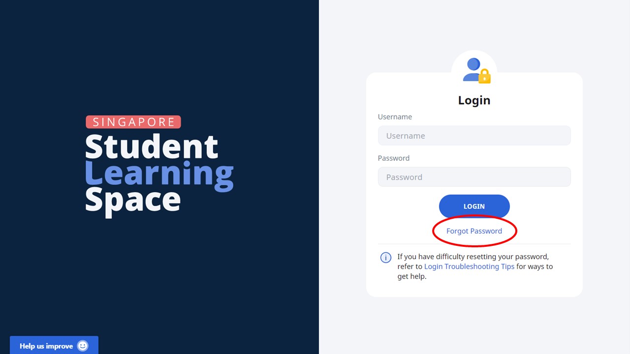Click on the Forget Password at the log in page of Student Learning Space.